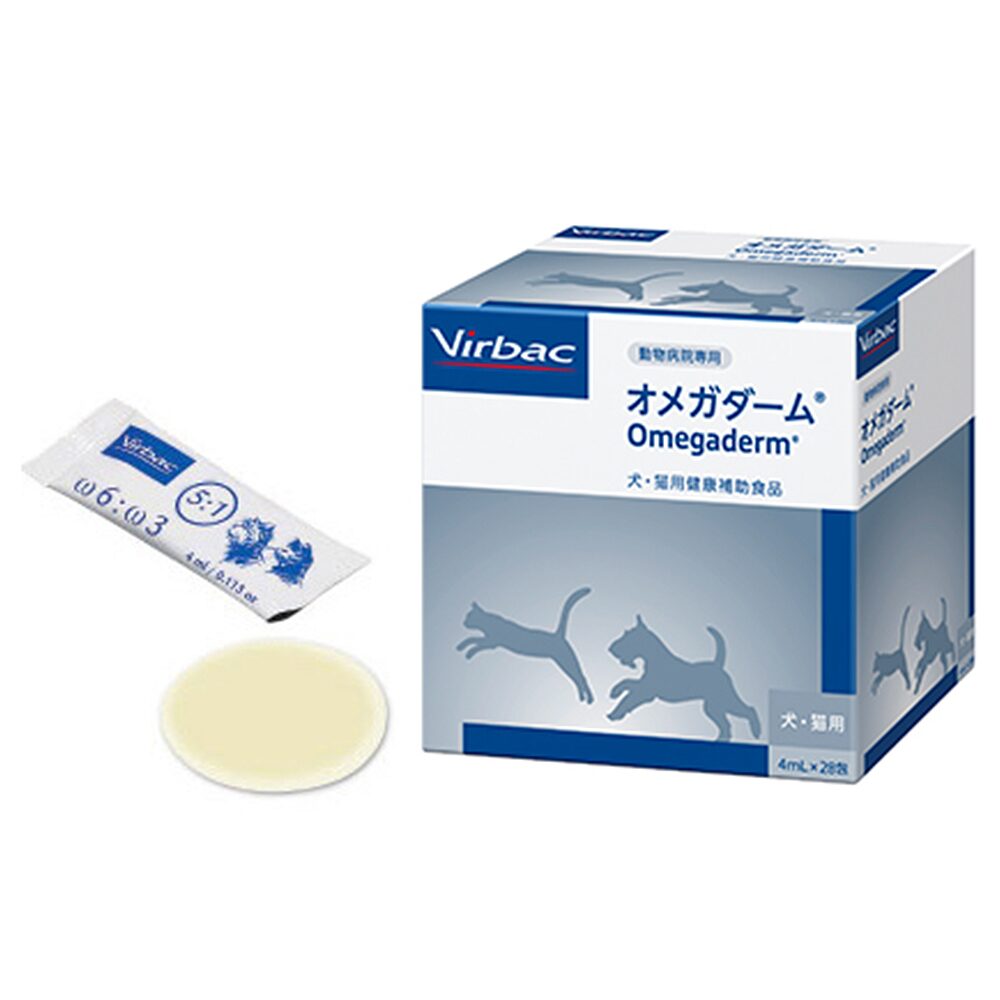 オメガダームは、猫の皮膚や被毛の健康をサポートするためのサプリメントです。必須脂肪酸であるオメガ3・オメガ6脂肪酸をバランスよく配合しており、皮膚のバリア機能を整え、かゆみや乾燥をやわらげます。