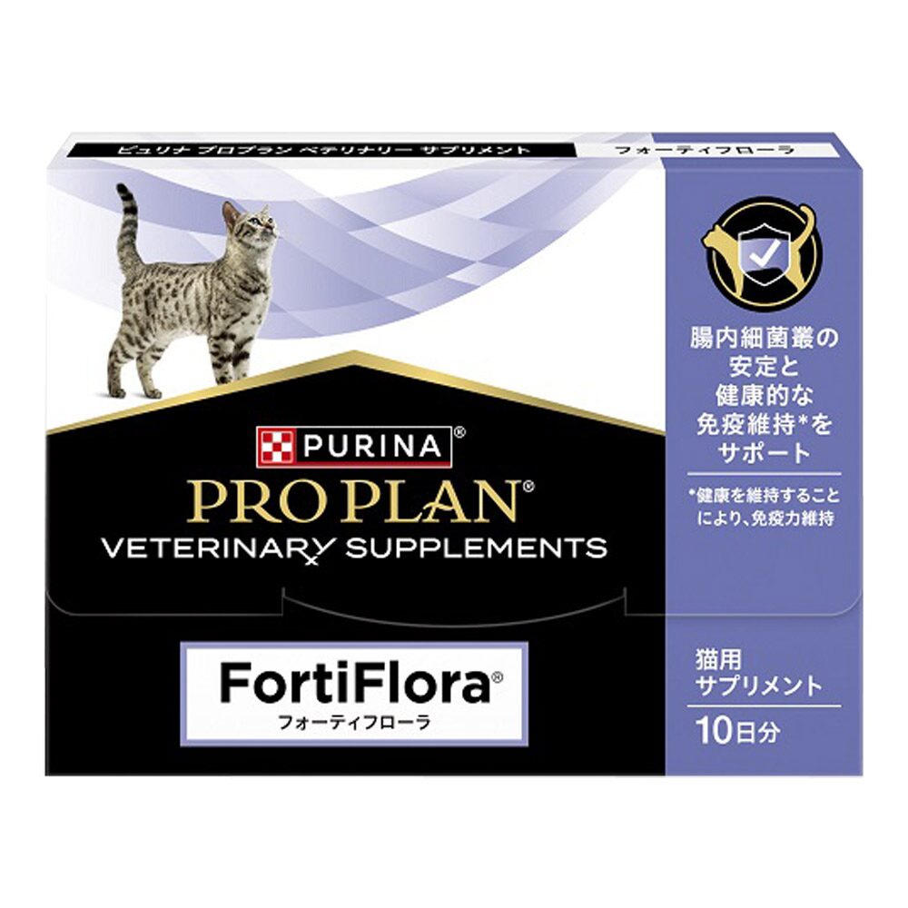 フォーティフローラは、猫の腸内環境を整えることで体全体の健康をサポートするサプリメントです。生きた善玉菌「プロバイオティクス」が配合されており、腸内バランスを保つことで免疫力を高め、皮膚トラブルの改善にも役立ちます。
